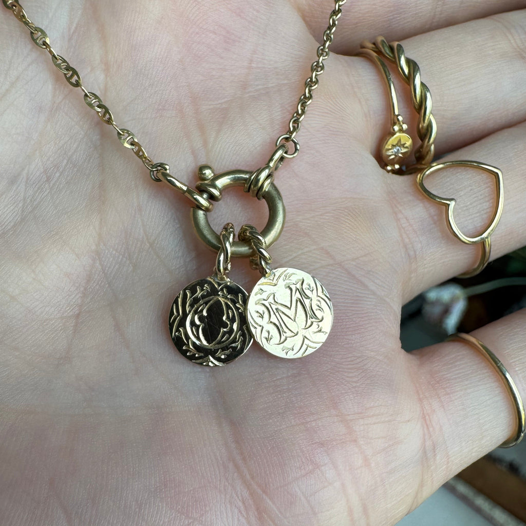 Een sieraad dat iets zegt zonder woorden. Onze 14K gouden coin is klein, subtiel en hand-gegraveerd in een klassieke stijl, speciaal voor jou gemaakt.