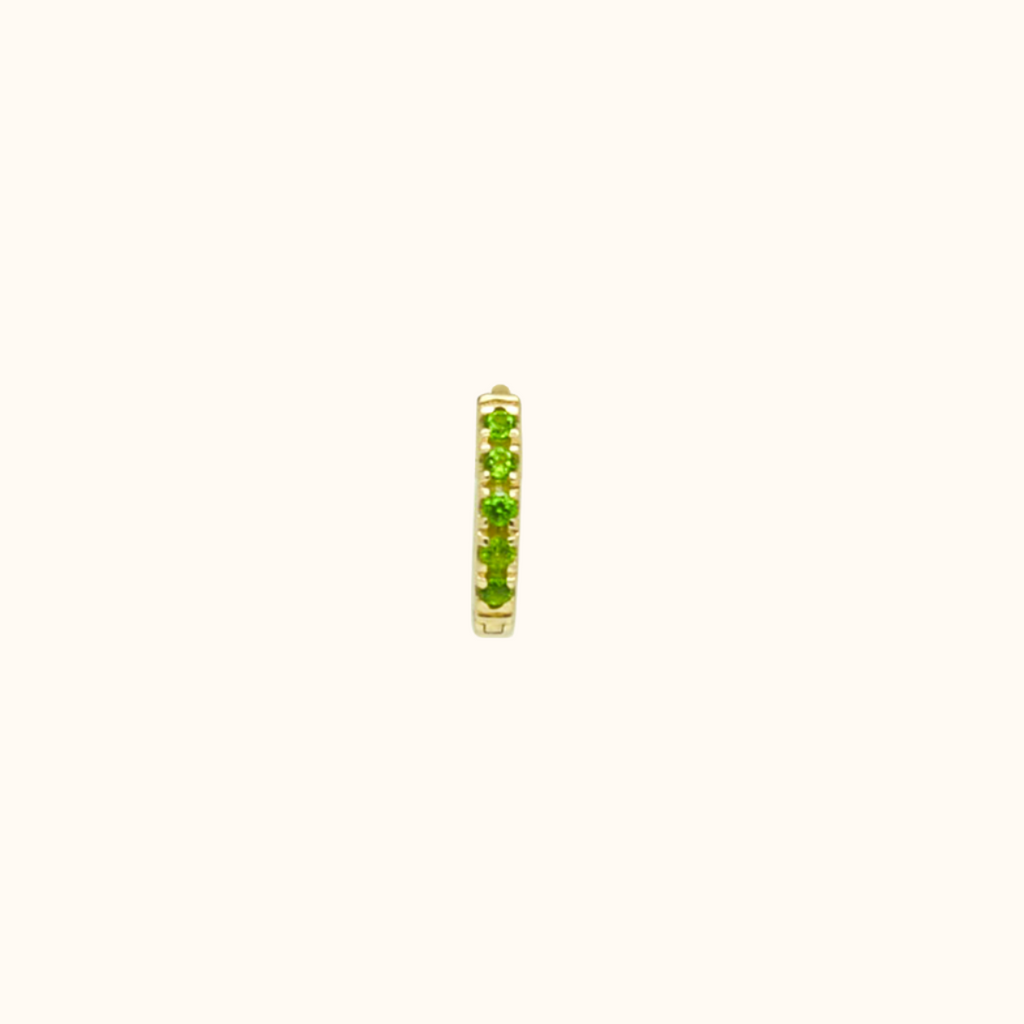 Prachtige hoops gemaakt van 14k massief goud en edelstenen. De hoops zijn 2 mm dik en hebben een diameter van 8 mm. Deze beauties zijn verkrijgbaar in diamant, blauwe saffier, roze rhodoliet, zwarte spinel en groene di-chroom.
