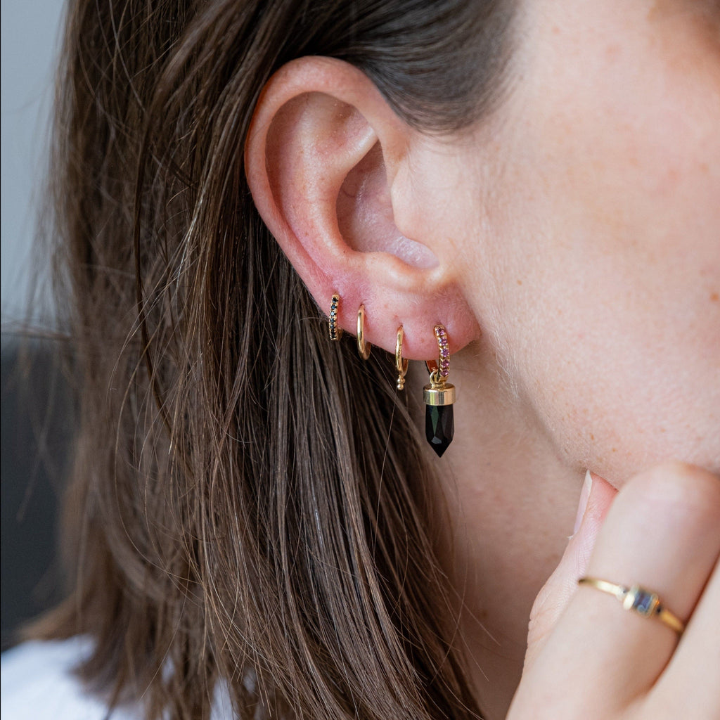 Prachtige hoops gemaakt van 14k massief goud en edelstenen. De hoops zijn 2 mm dik en hebben een diameter van 8 mm. Deze beauties zijn verkrijgbaar in diamant, blauwe saffier, roze rhodoliet, zwarte spinel en groene di-chroom.