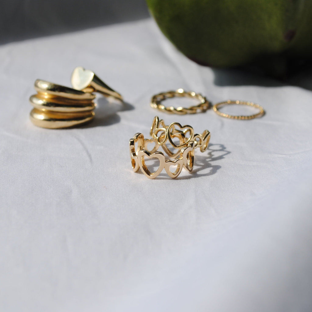 Deze gouden hartring met 8 verschillende harten is echt een must-have! Perfect om dag en nacht te dragen, en absoluut een eye catcher. Want wie kan er nu te veel liefde om zich heen hebben?