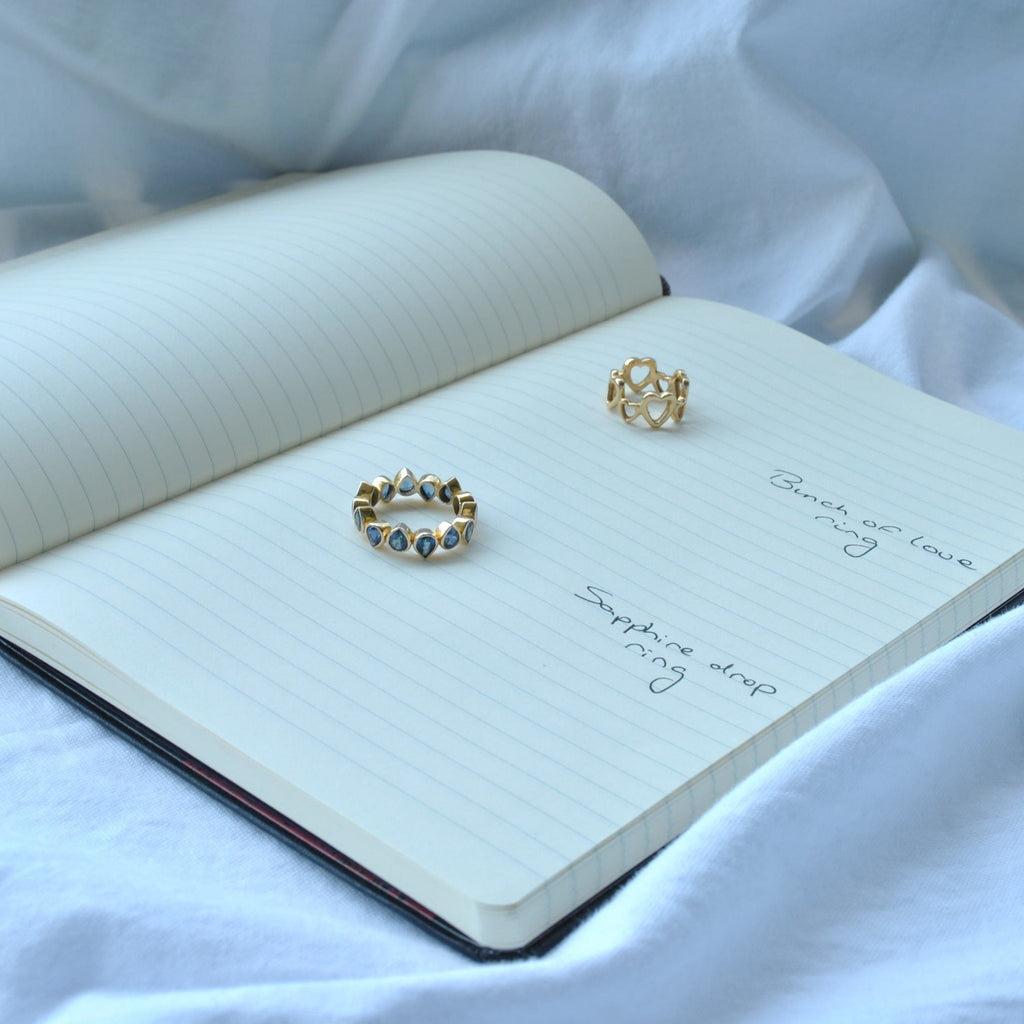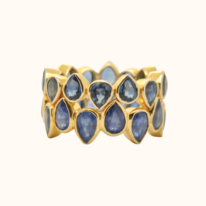 14K ring met blauwe peervormige saffieren