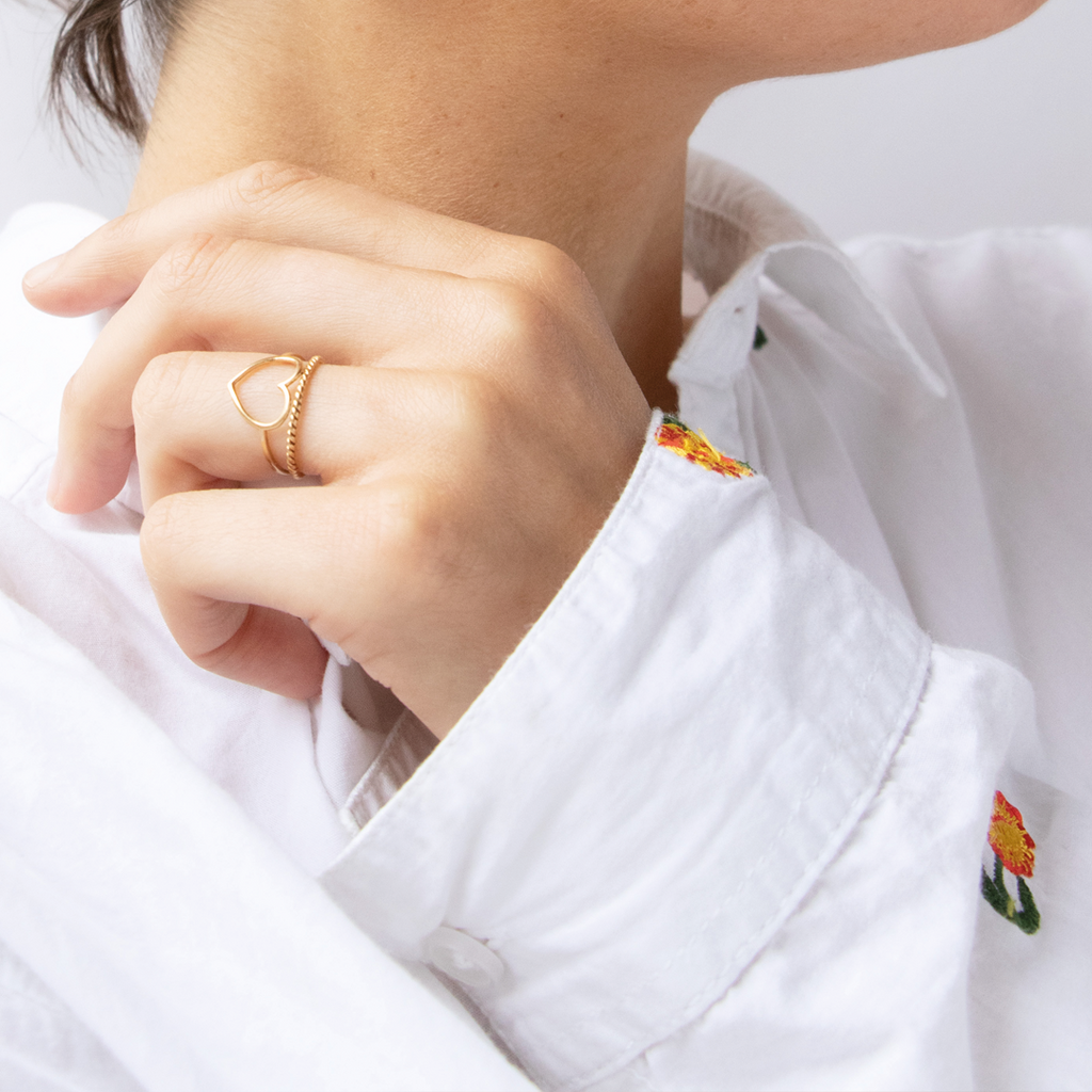 - De hartvormige ring is van 14 karaat massief geelgoud