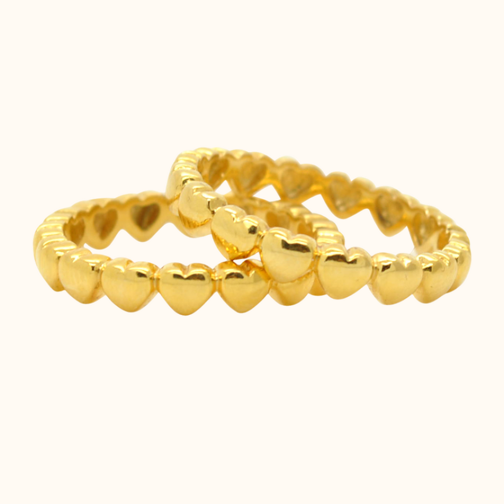 Deze gouden ring met hartjes is speels en tovert een glimlach op je gezicht. Perfect om te stacken met andere ringen!