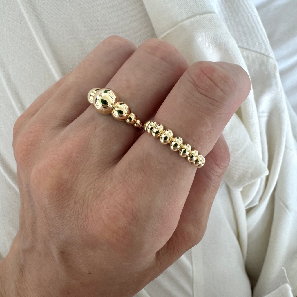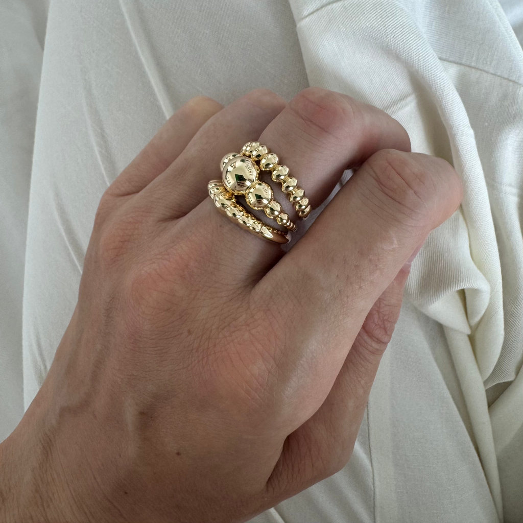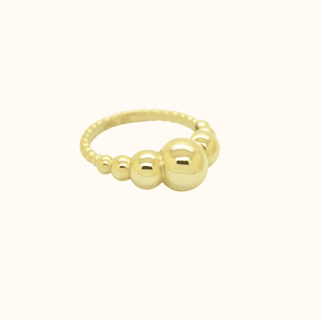 Een echte eyecatcher. Tijdloos, stijlvol en makkelijk te dragen. De gouden bolletjes variëren van dik naar dun, waardoor de ring altijd comfortabel zit. Perfect voor elke look, maar toch een statement!