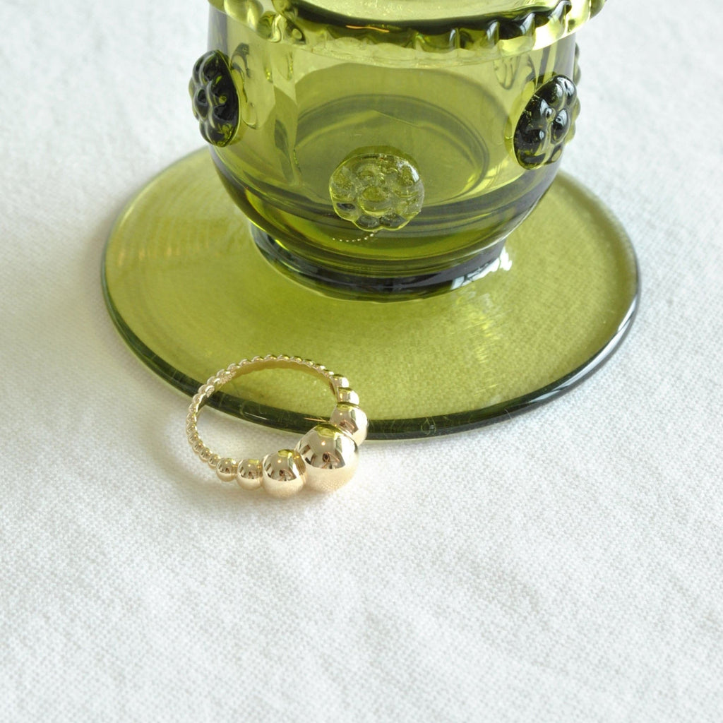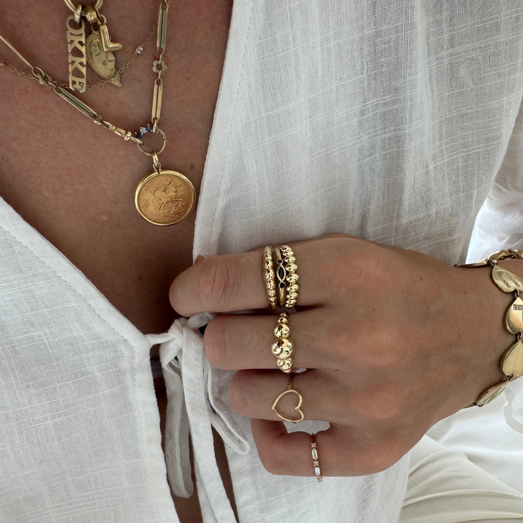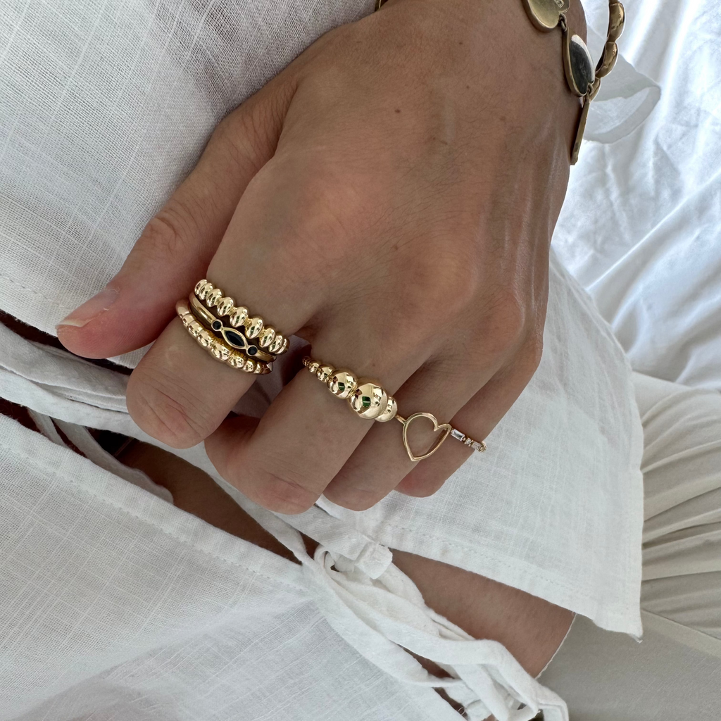 Een echte eyecatcher. Tijdloos, stijlvol en makkelijk te dragen. De gouden bolletjes variëren van dik naar dun, waardoor de ring altijd comfortabel zit. Perfect voor elke look, maar toch een statement!