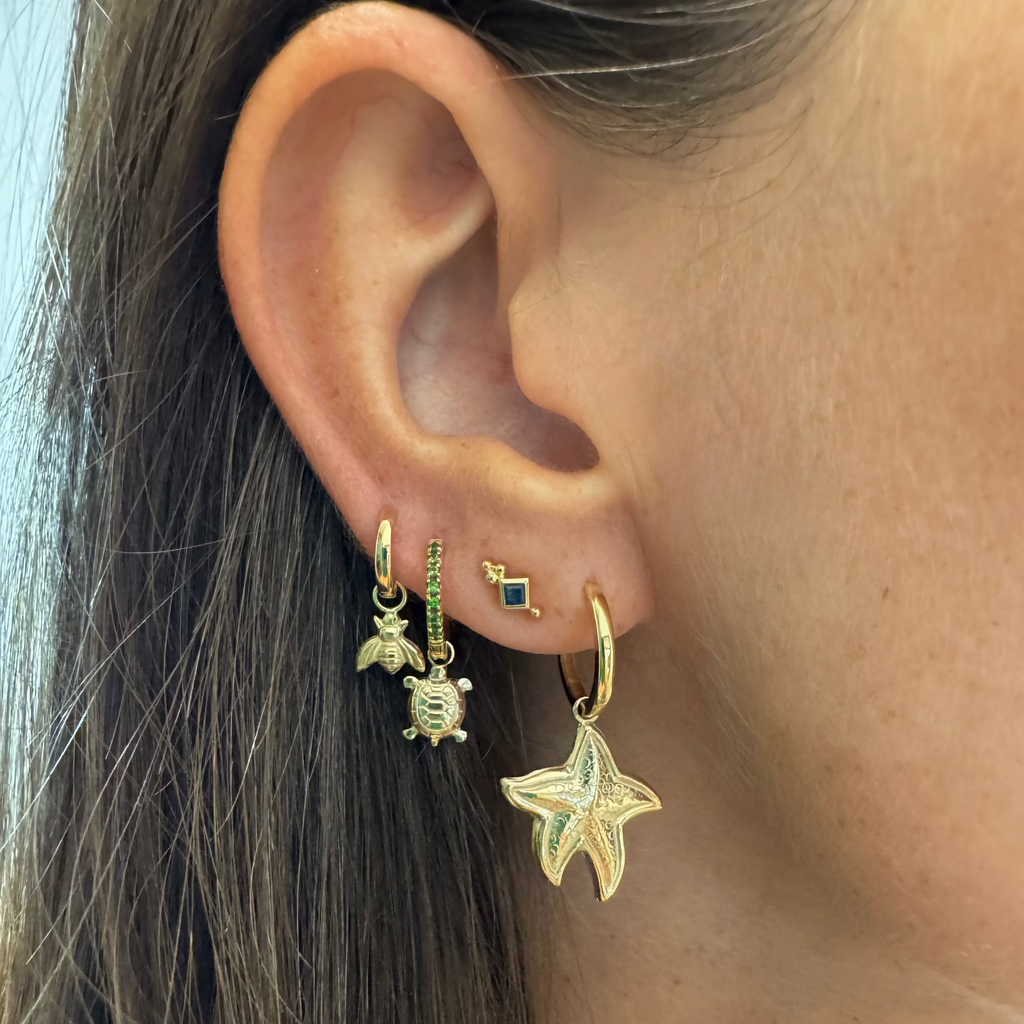 Mooie ruitvormige stud om je oorbellen collectie compleet te maken! Gemaakt van 14K geelgoud en gezet met een blauwe saffier. De bolletjes geven net dat beetje extra. Perfect voor elke dag of als finishing touch voor je ear stack.